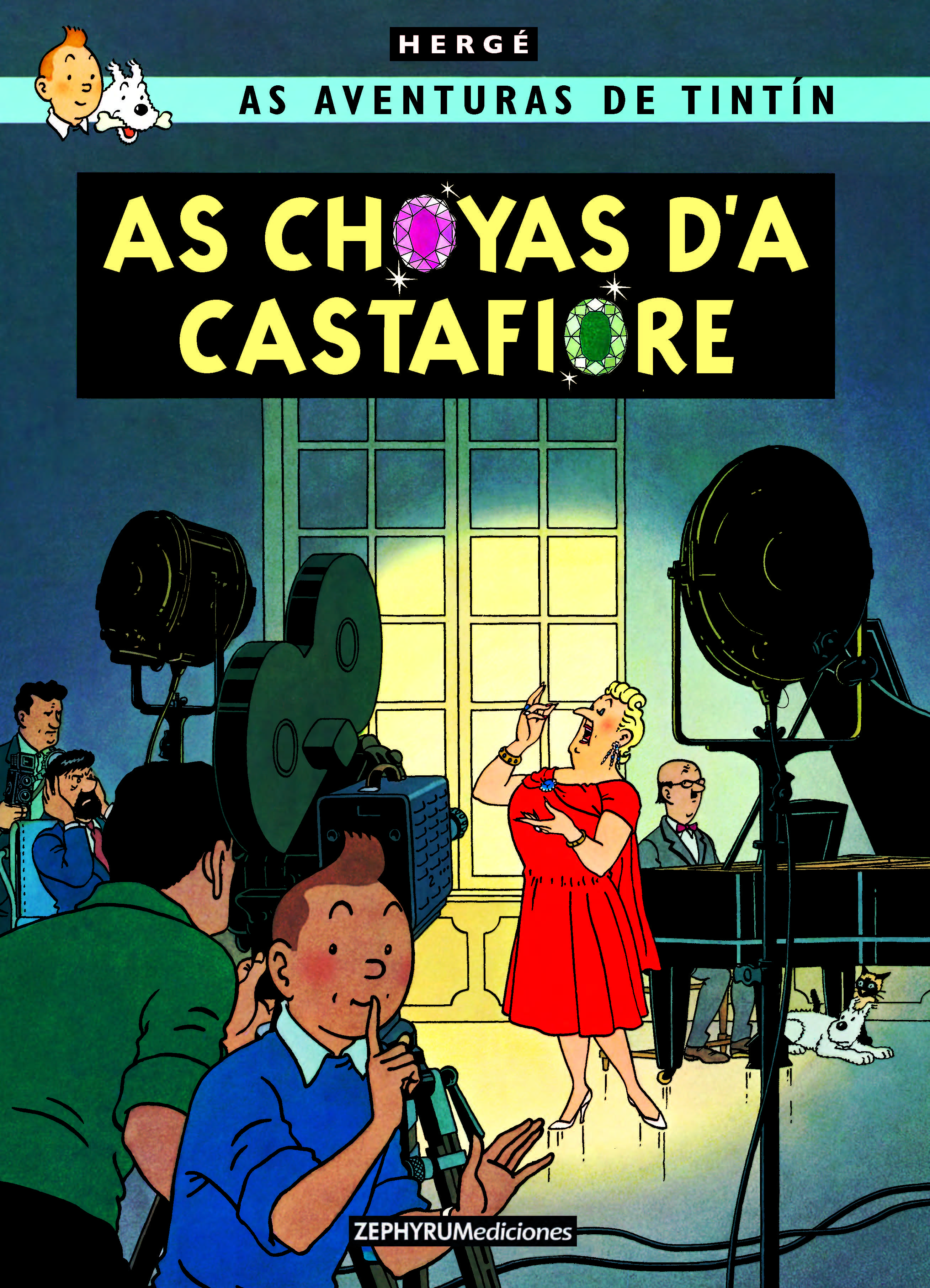 Nomás arribar en Moulinsart, Nestor le comunica a lo Capitán Haddock a intinzión d'a diva Bianca Castafiore fer-les una vesita. O Capitán Haddock demanda a Hector que no desfaiga as valisas porque marcha aventau. Pero… en baixando un escalerón estorbau que encara no ye apañau por o siñor Pando, cai a tombos y se trenca o ligamentos d'una garra. A la vegada i plegan tamién os periodistas, os empandullos y as engulemadas.